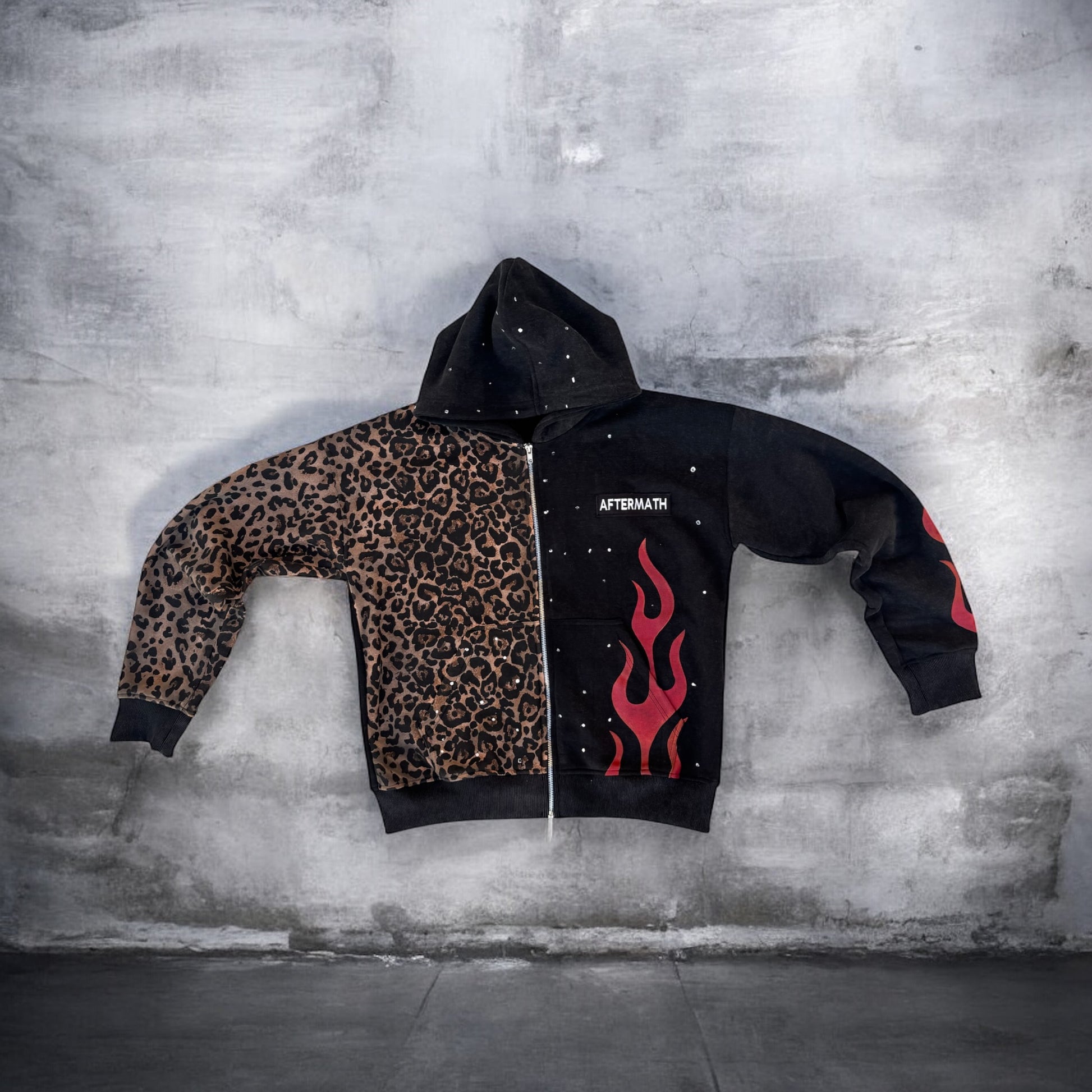Featuring a split cheetah print and flame graphic construction, this garment was designed to feel aggressive without being careless. Every detail exists with purpose.